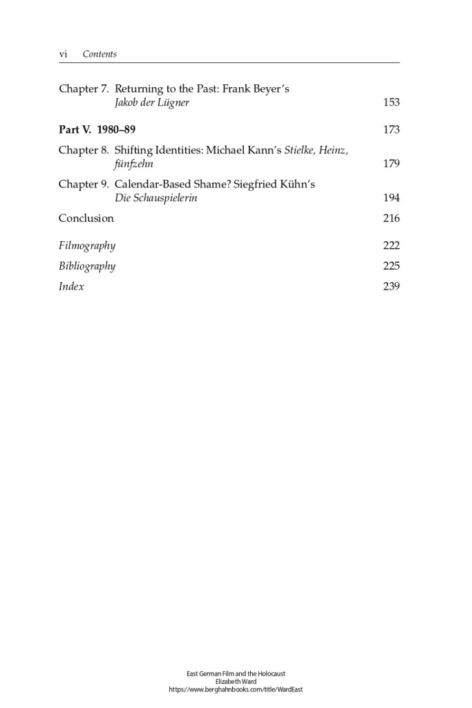 Brad Prager, University of Missouri“[This] exceptionally researched monograph…[with an] extensive filmography—also the first of its kind in English—and the archival materials including press and print reviews that Ward consulted make this book an important resource for scholars and teachers of East German cinema. Equally important to scholars of East German film and Holocaust studies is Ward’s ability to foreground subtle yet crucial details in her film analyses and weave them together with insights from interviews, private and company correspondence, political officials’ statements, and industrial papers.”